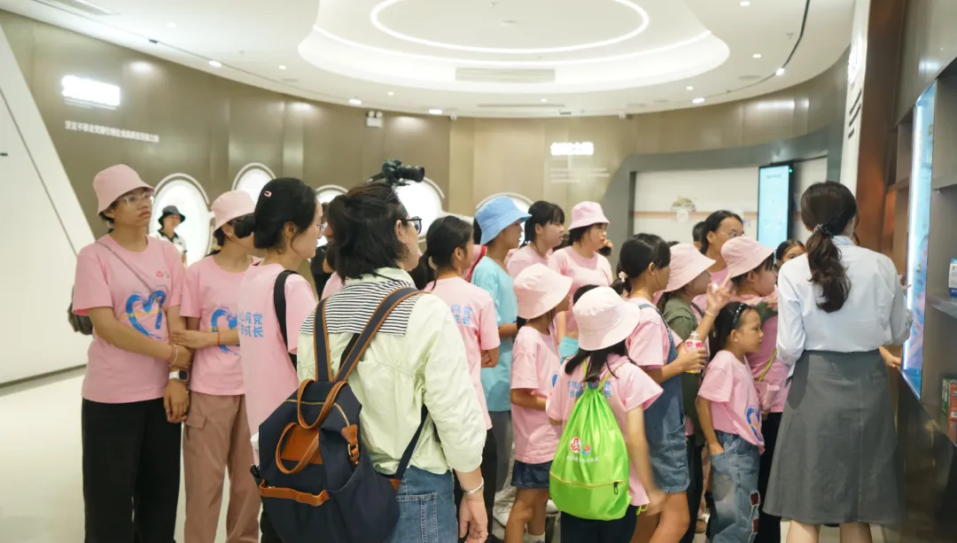 紧接着,孩子们来到了建党百年庆典红旗——070号红旗前。讲解员讲述了w66旗舰厅药业集团与庆典红旗的深厚渊源。孩子们听得津津有味,眼中闪烁着对党和国家的热爱与敬仰。